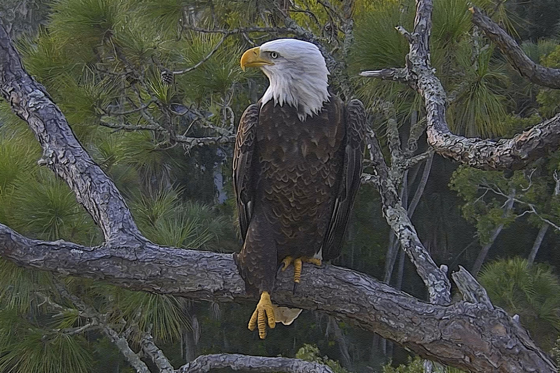 922AM - Later that morning A2 perched in the pine and allowed Samson to do some nestorations on his own.
